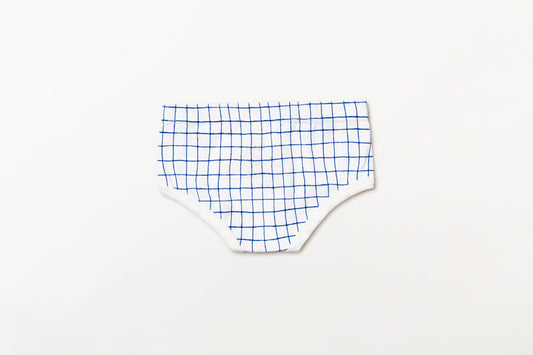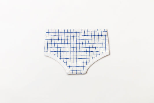 Cueca infantil canelada em algodão orgânico - Xadrez azul índigo