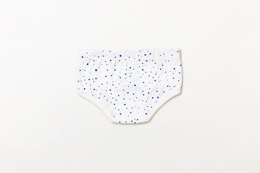 Calcinha infantil suedine em algodão orgânico - Bolinha azul índigo