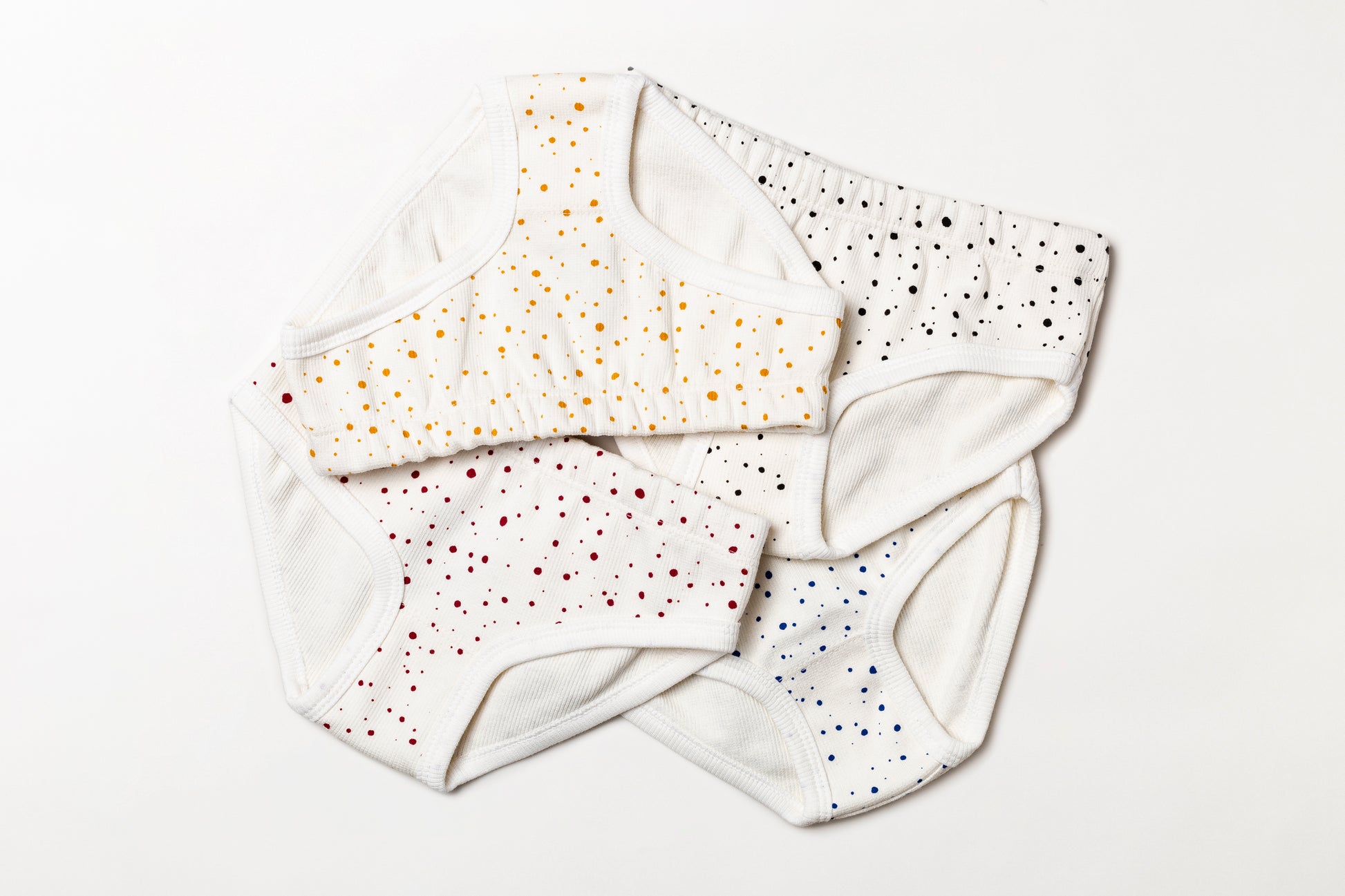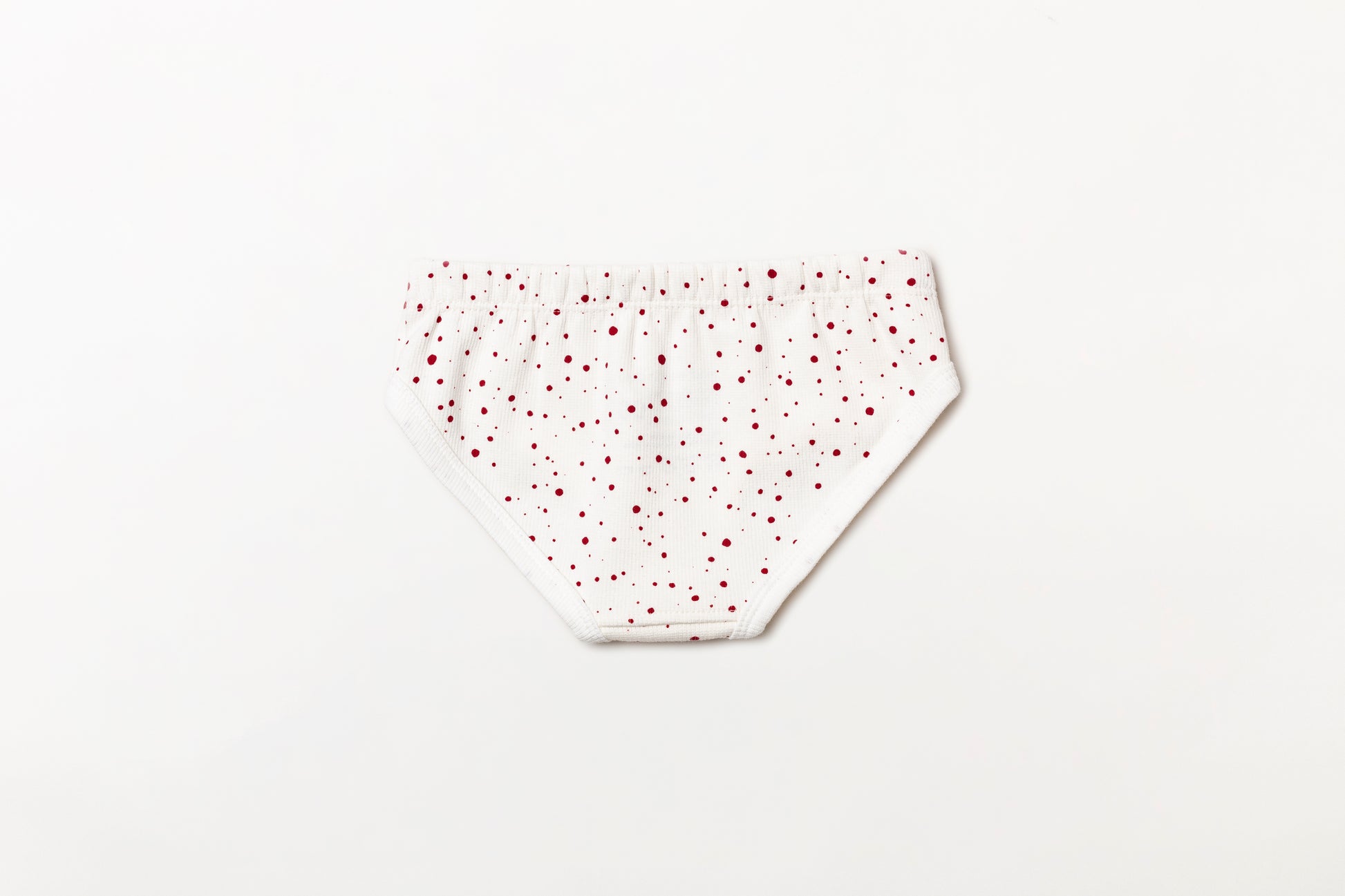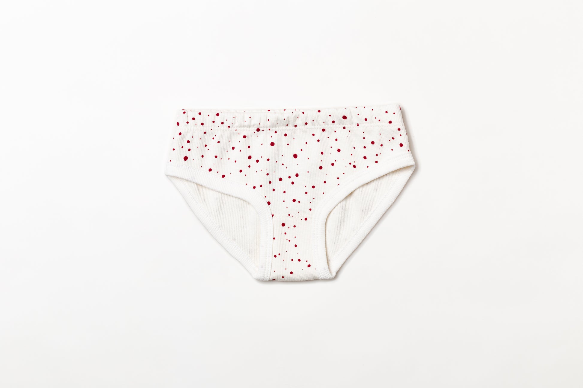 Calcinha infantil canelada em algodão orgânico - Bolinha vermelho rubia