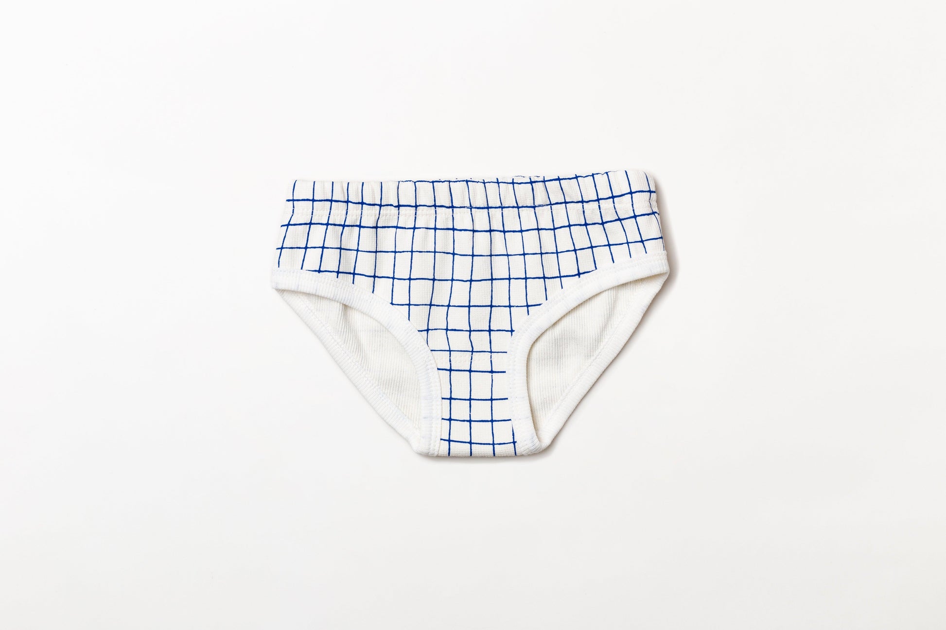 Calcinha infantil canelada em algodão orgânico - Xadrez azul índigo