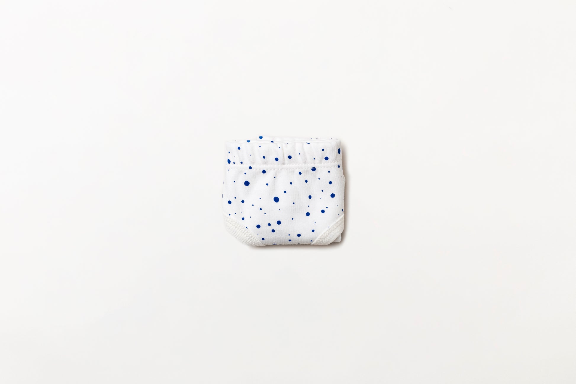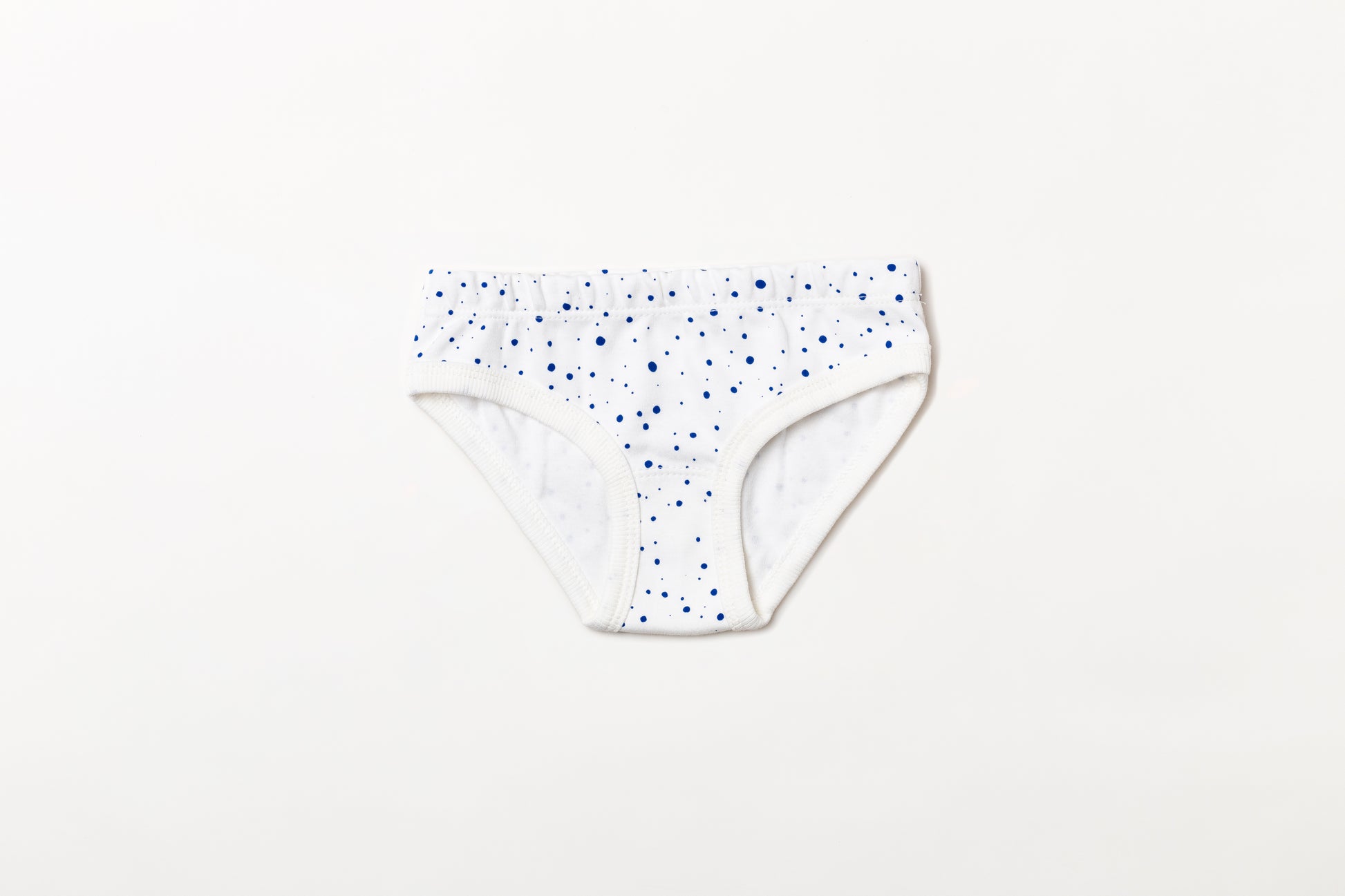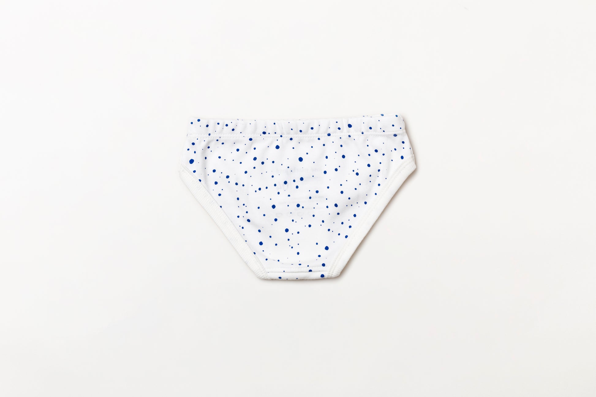 Calcinha infantil suedine em algodão orgânico - Bolinha azul índigo