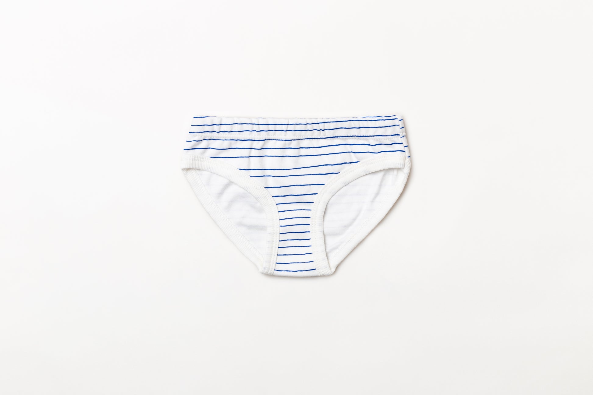Calcinha infantil suedine em algodão orgânico - Listra azul índigo