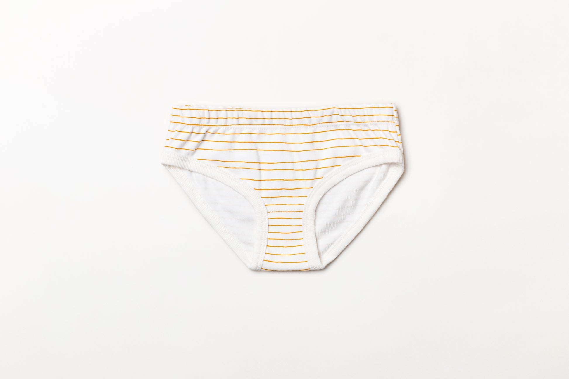 Calcinha infantil suedine em algodão orgânico - Listra amarelo açafrão