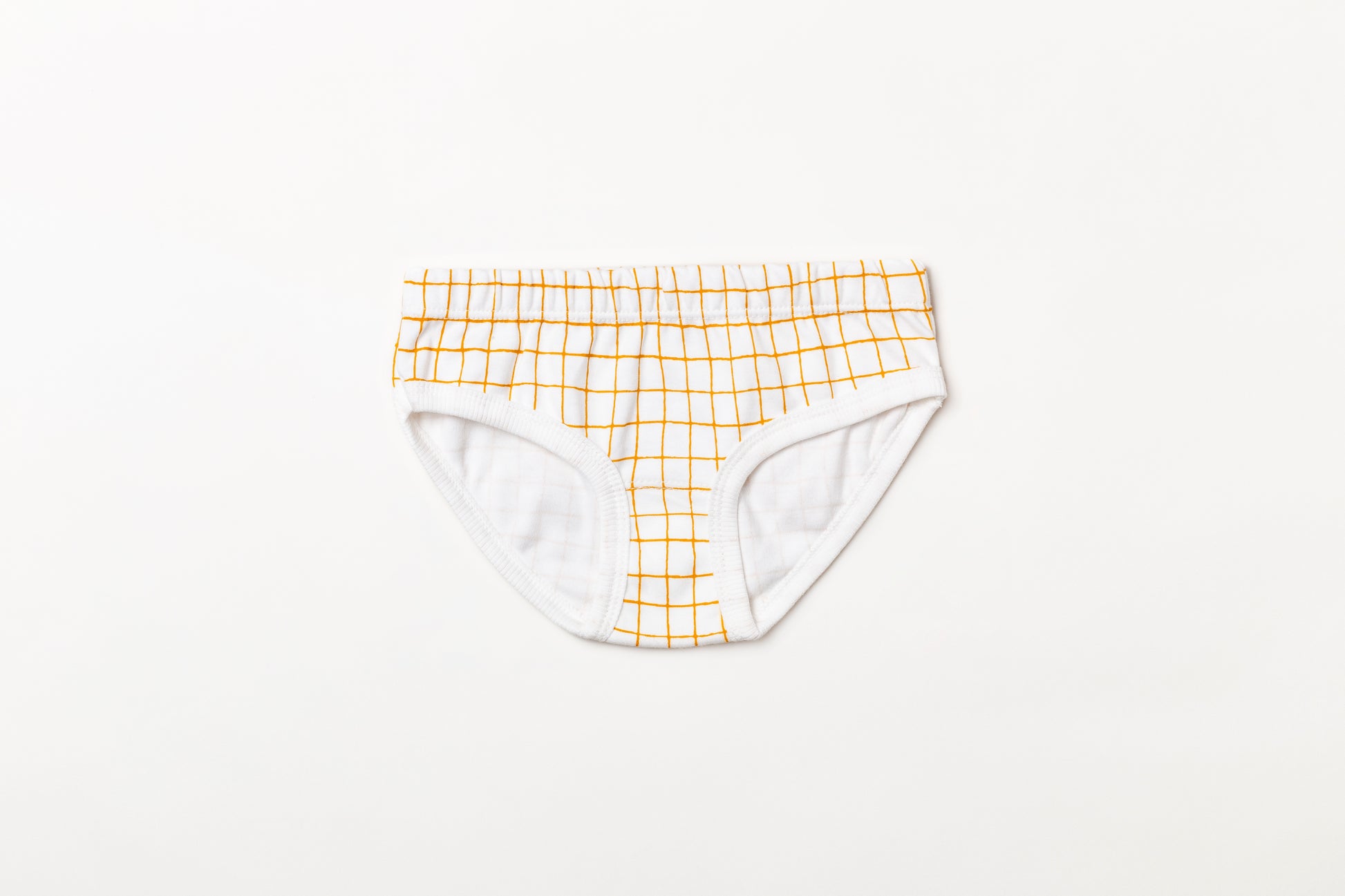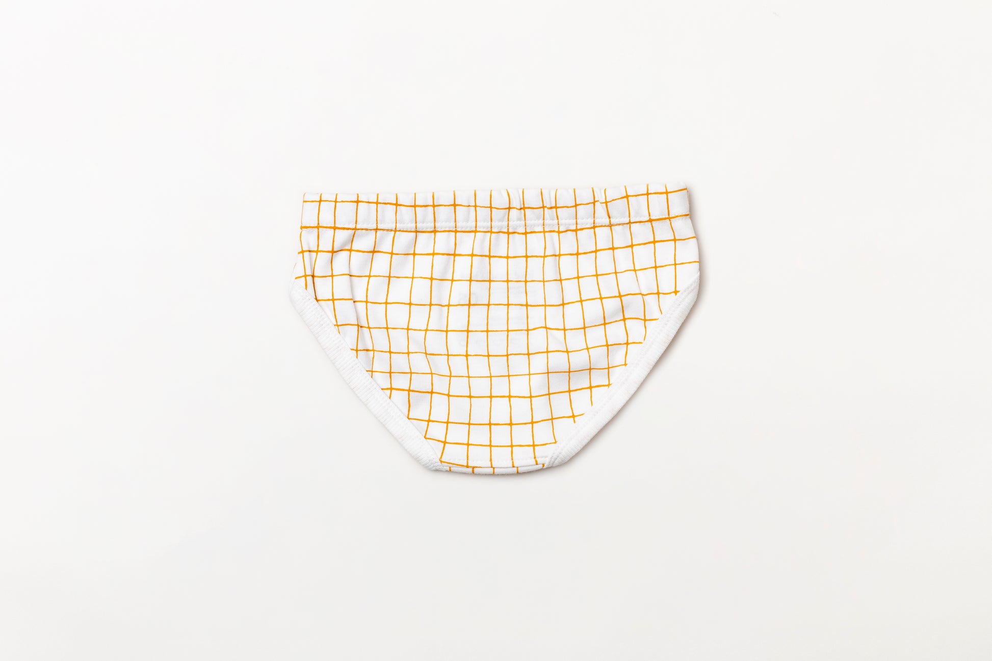 Calcinha infantil suedine em algodão orgânico - Xadrez amarelo açafrão