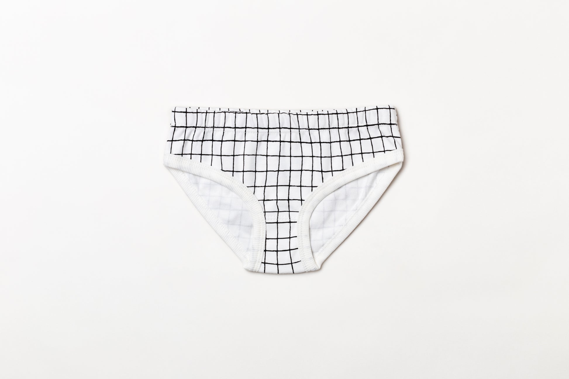 Calcinha infantil suedine em algodão orgânico - Xadrez preto carvão