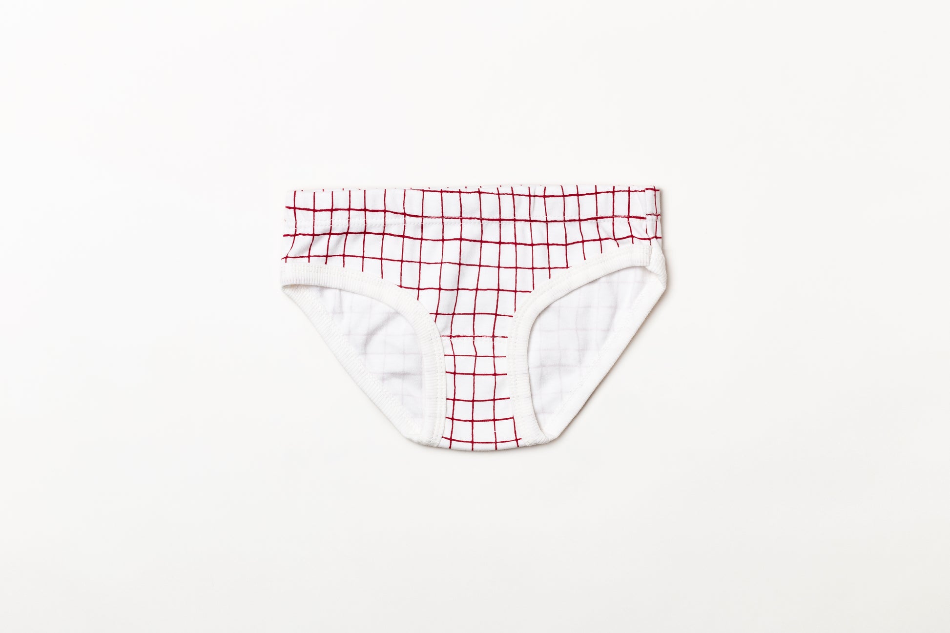Calcinha infantil suedine em algodão orgânico - Xadrez vermelho rubia