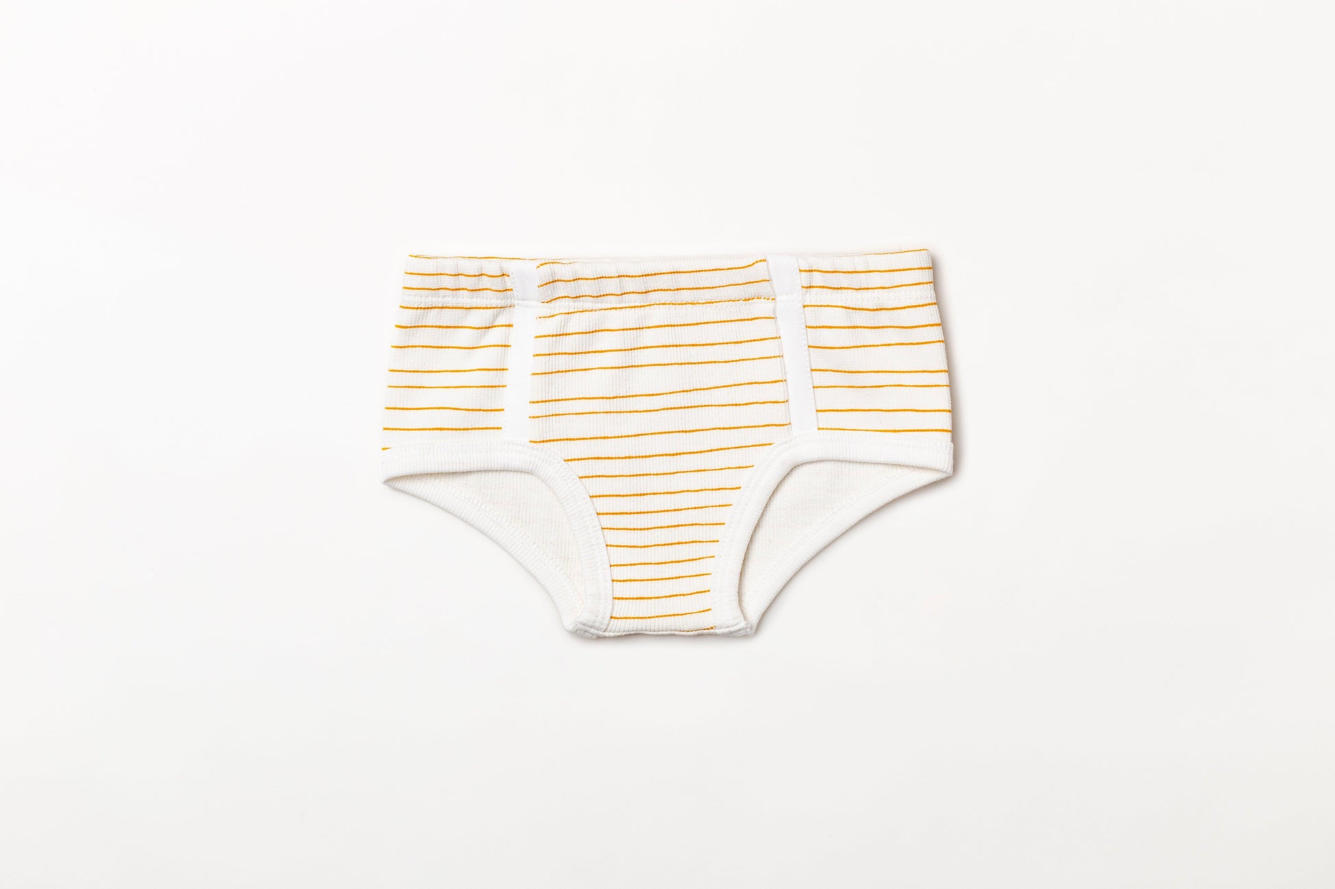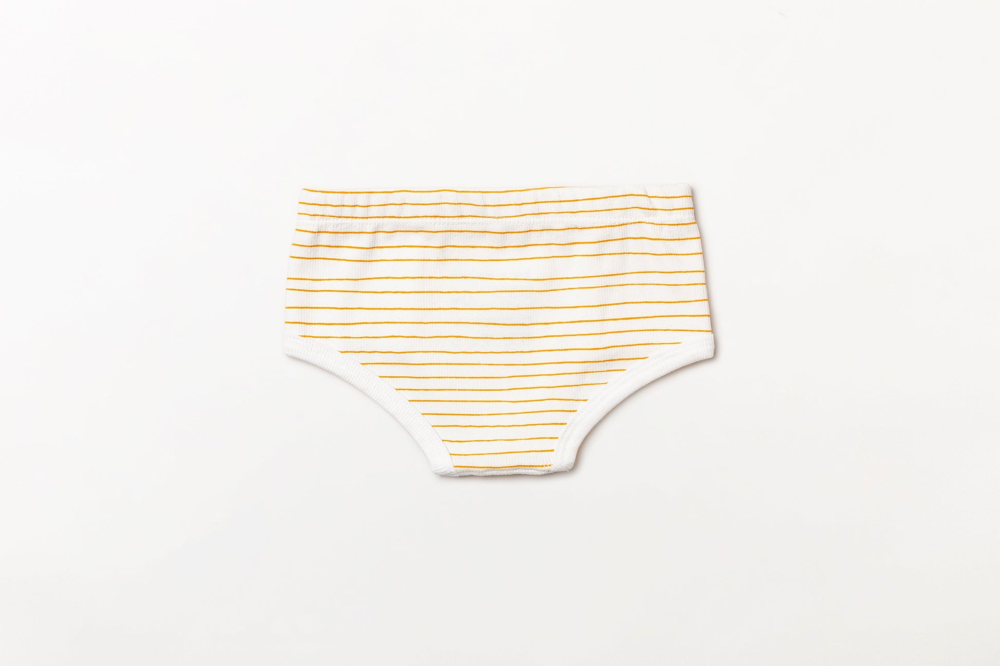 Cueca infantil canelada em algodão orgânico - Listra amarelo açafrão
