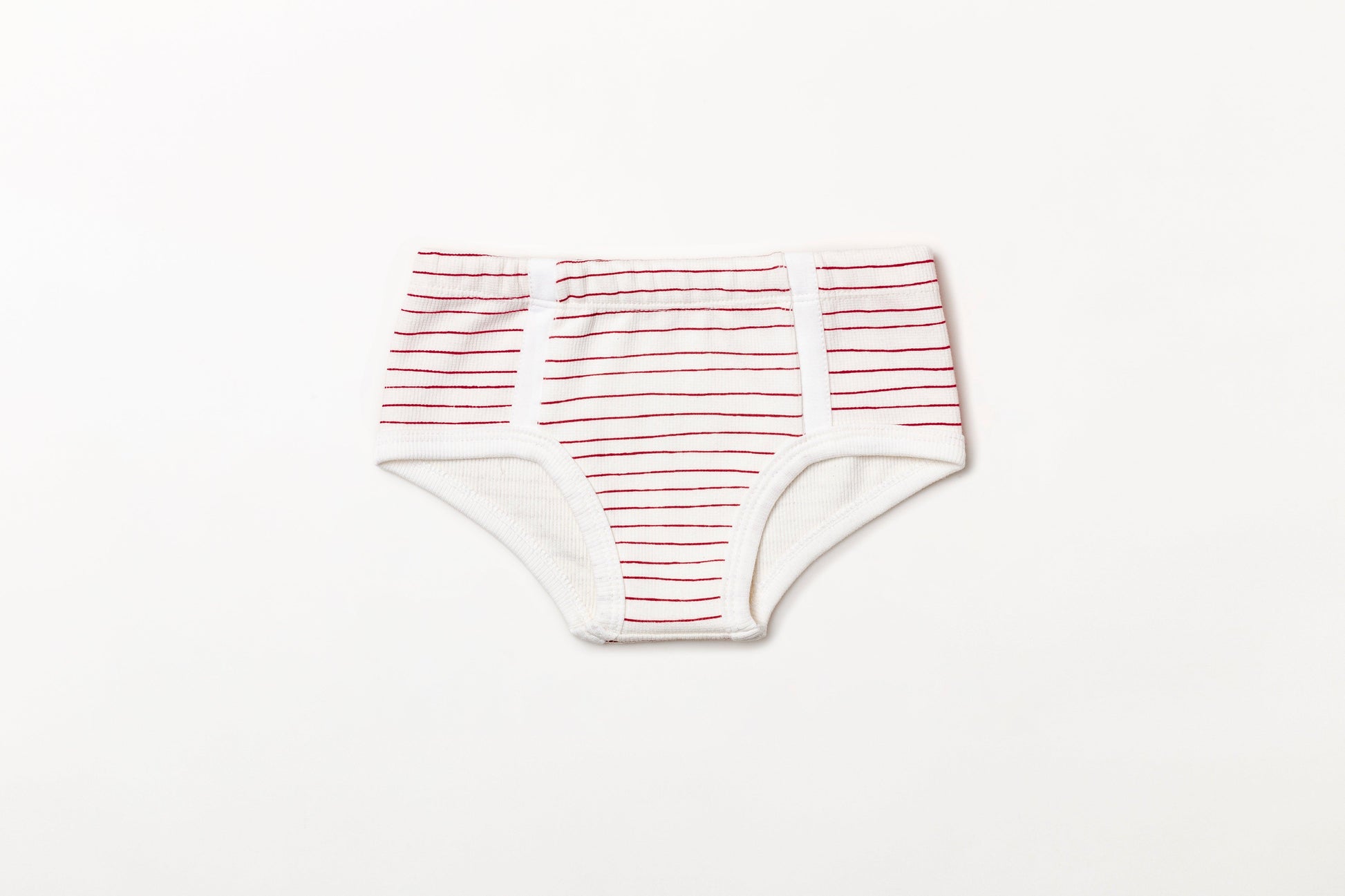 Cueca infantil canelada em algodão orgânico - Listra vermelho rubia