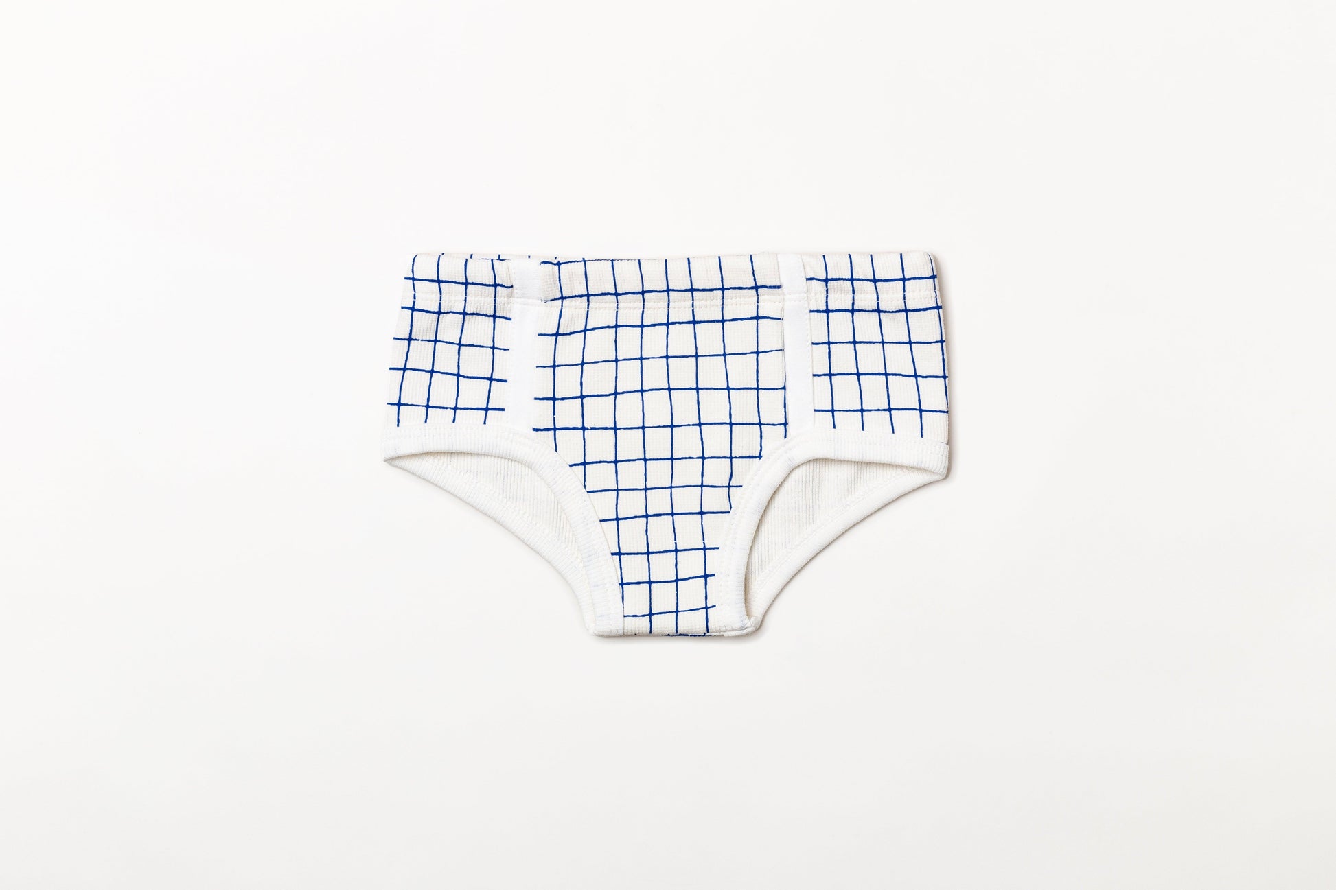 Cueca infantil canelada em algodão orgânico - Xadrez azul índigo