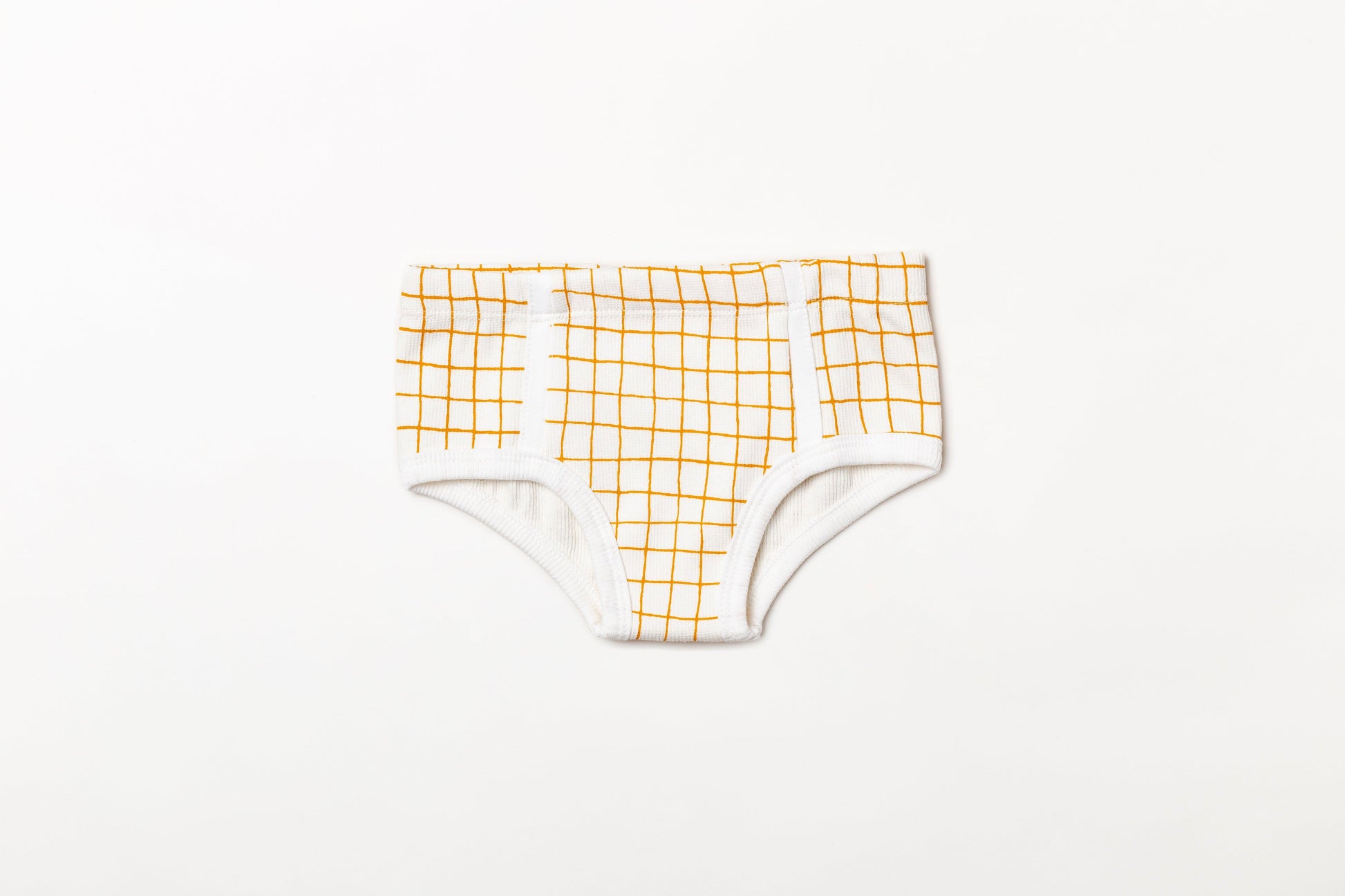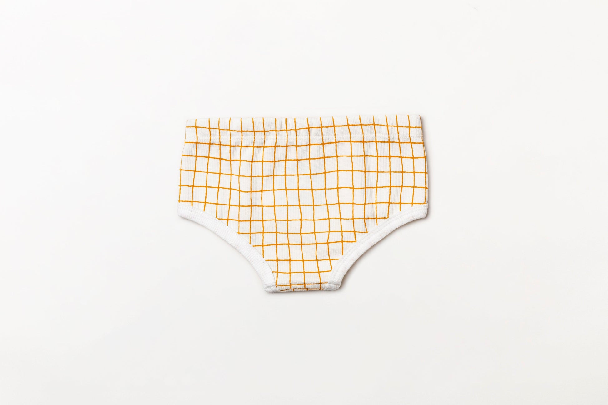 Cueca infantil canelada em algodão orgânico - Xadrez amarelo açafrão