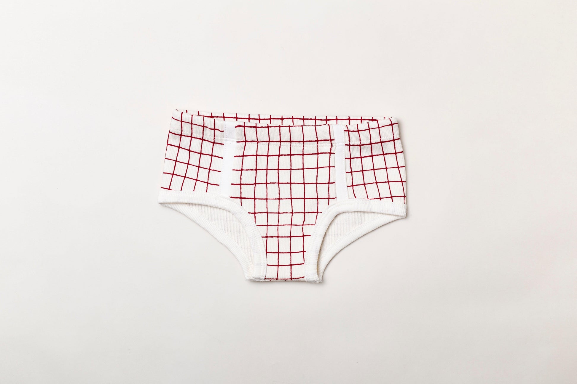 Cueca infantil canelada em algodão orgânico - Xadrez vermelho rubia