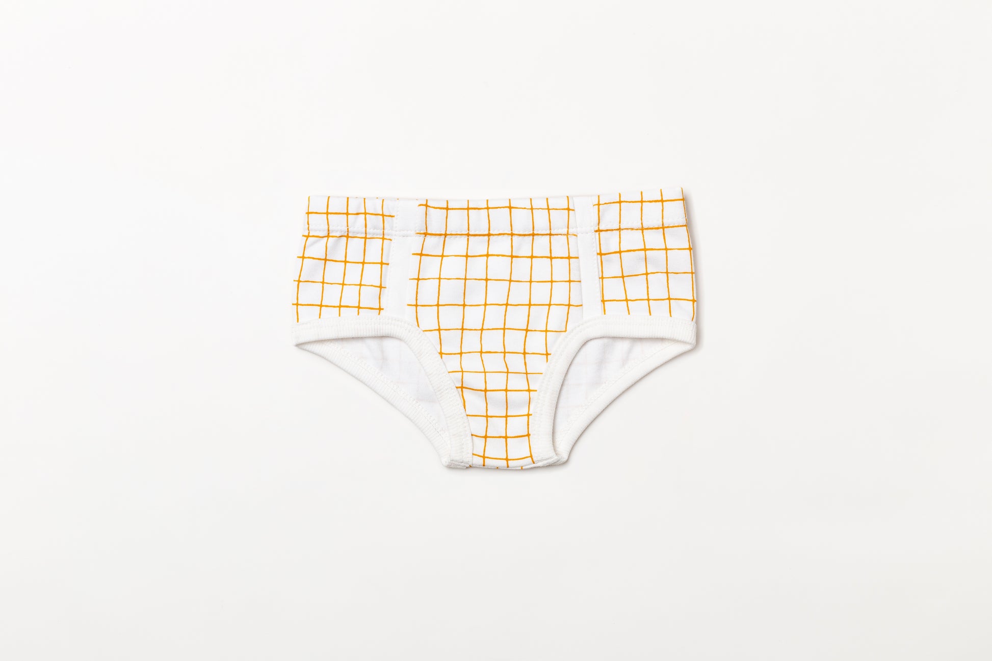 Cueca infantil suedine em algodão orgânico - Xadrez amarelo açafrão