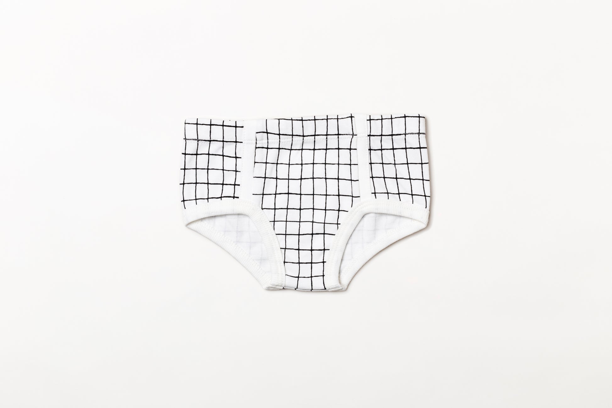 Cueca infantil suedine em algodão orgânico - Xadrez preto carvão