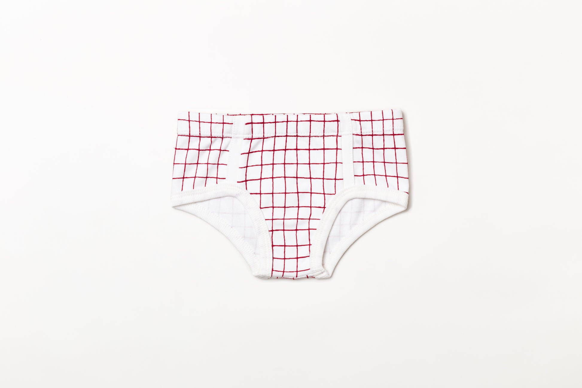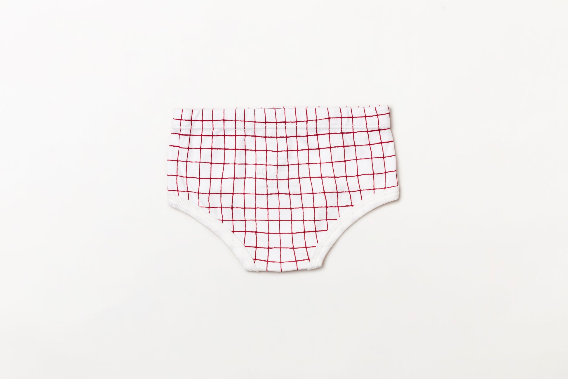 Cueca Infantil suedine em algodão orgânico - Xadrez vermelho rubia